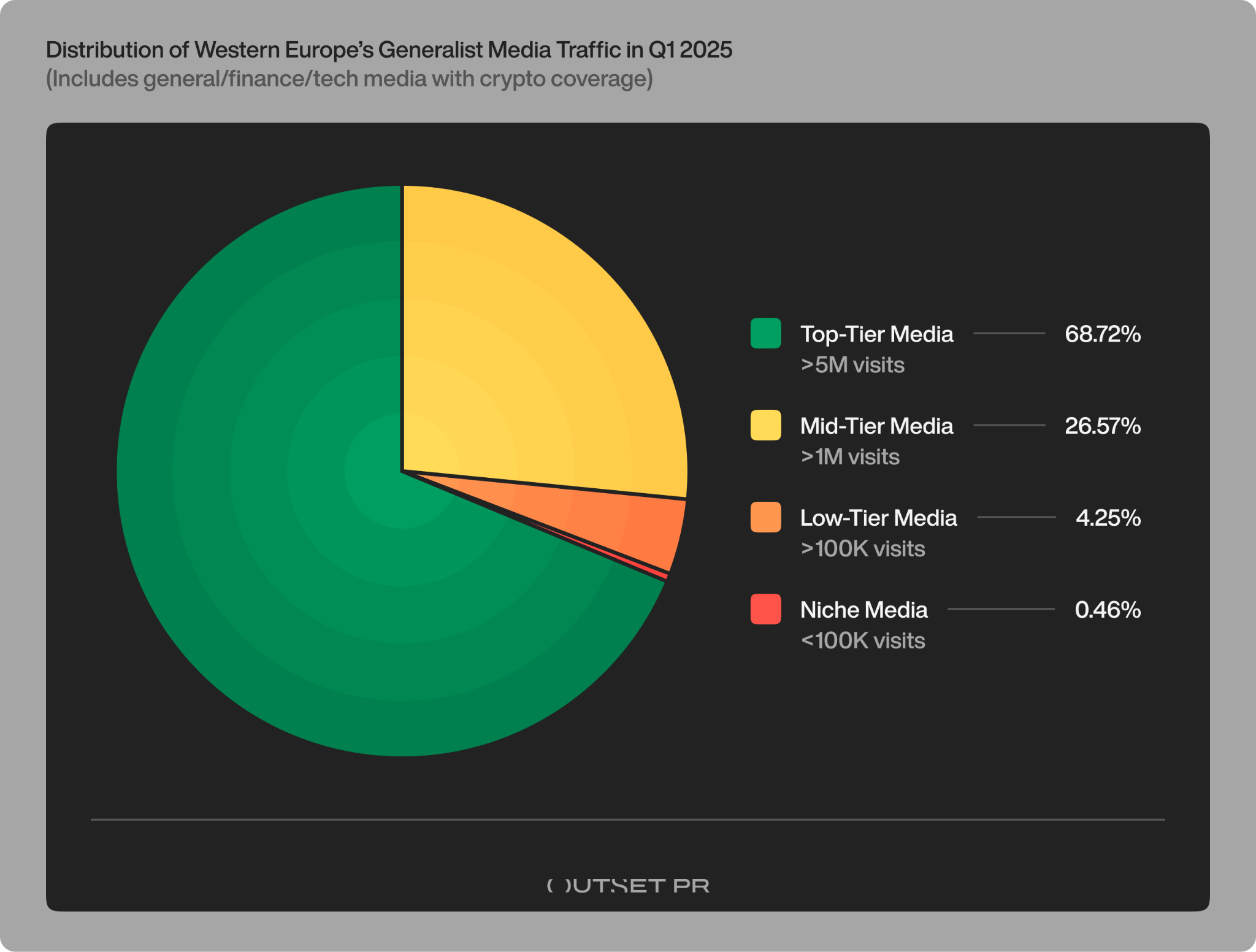 In total, Outset PR found that only 18% of the crypto-native outlets they tracked managed to grow their traffic in Q1 2025. And even among those, most gains were relatively small in absolute terms. Many of the “winners” were niche sites starting from a low base, their double- or triple-digit percentage growth is impressive but still leaves them under 100,000 monthly visits on average.